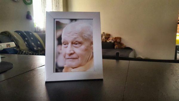 Az urna előtt állt fehér keretben Apu fényképe. A lehető legvidámabb, legmosolygósabb kép került végül a fehér keretbe. Én először egy igazolványképből felnagyított fotót választottam, és a többiek ragaszkodtak a mosolygóshoz, de végül én sem bántam, hiszen így mindenki aki megállt a ravatal előtt, erre az arcára emlékezhetett utoljára.