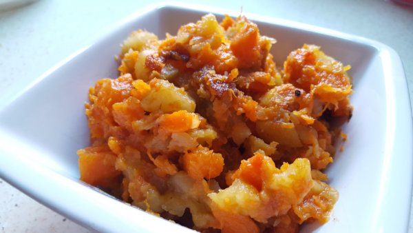Akkor sem kell megijedni, ha valamelyik kicsit túlfő, jobban megpuhul vagy akár szét is esik. Ha egy kicsit kisebbre vágtuk a hozzávalókat, akkor ez könnyen megeshet, viszont így is nagyon finom, bár látványnak nem túl tetszetős. Azzal együtt viszont túl nagyra se vágjuk, mert akkor meg nehezen puhul meg, kemény maradhat a sütőtök.